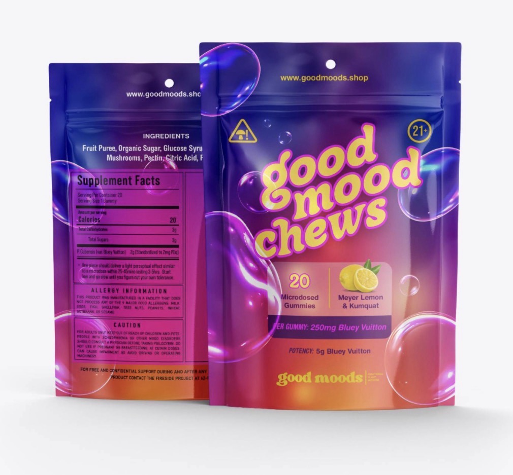 Good Moods’ Good Mood Chew gummies are a tasty, fun and therapeutic way to eat your favorite Good Moods magic mushrooms 🙂 Small, moon shaped doses that are perfect for sharing. 20 gummies per bag!
